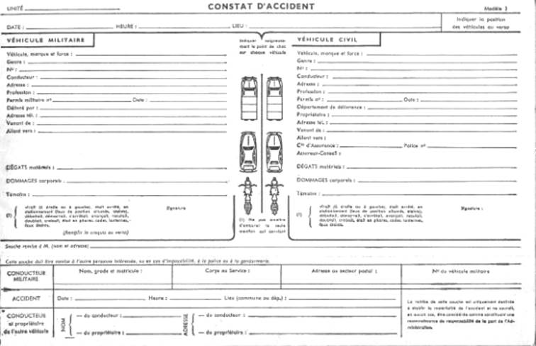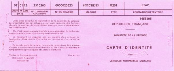conduite militaire, des documents propres au véhicule.
