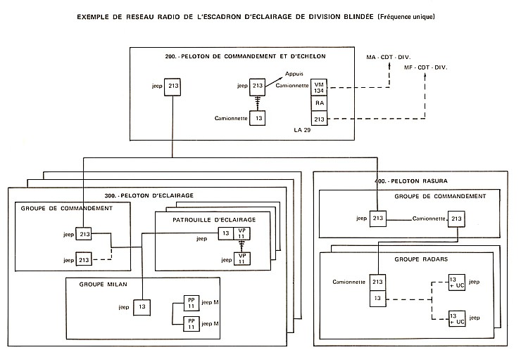 patrouilles d'éclairage) - 1 peloton RADAR (1 groupe commandement et 2 groupes