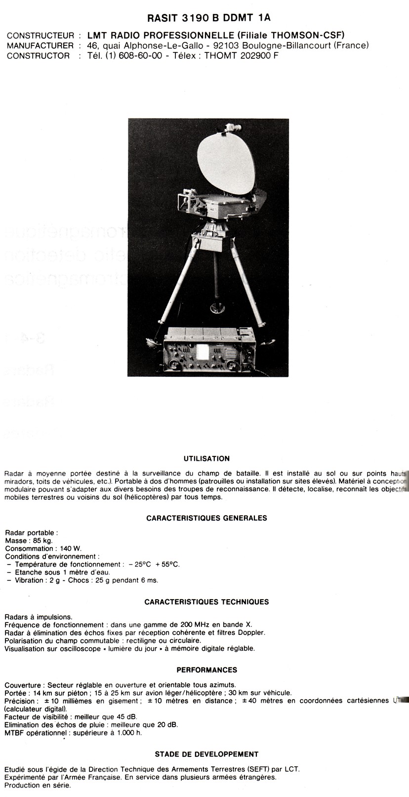 Surveillance Rapprochée) du début feront place au milieu des années 80 aux RASIT (radar de