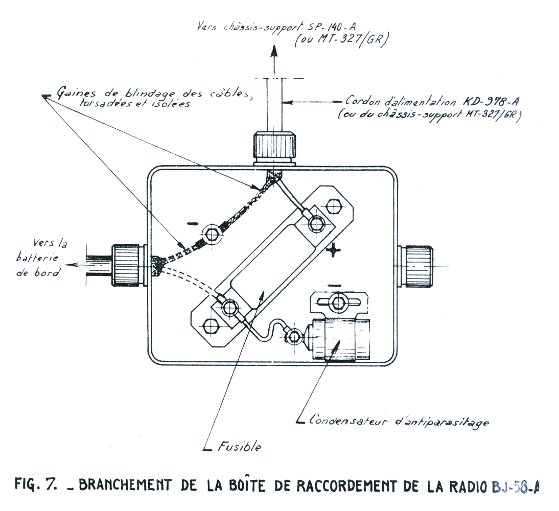 boîte de raccordement de la radio BJ-58-A suivant la figure 7. l) Fixer le cordon d’alimentation KD-978-A par l’intermédiaire de
