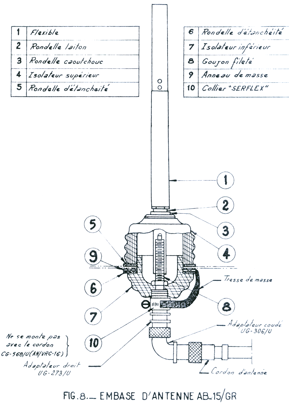 la « gouttière pour câbles ». m) Fixer l’embase d’antenne AB-15/GR (figure 8), équipée des