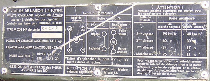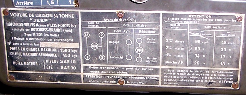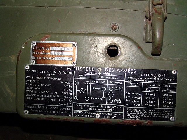 plaque spécifique. Ainsi, la photo ci-dessus concerne une M201 6V de 1957